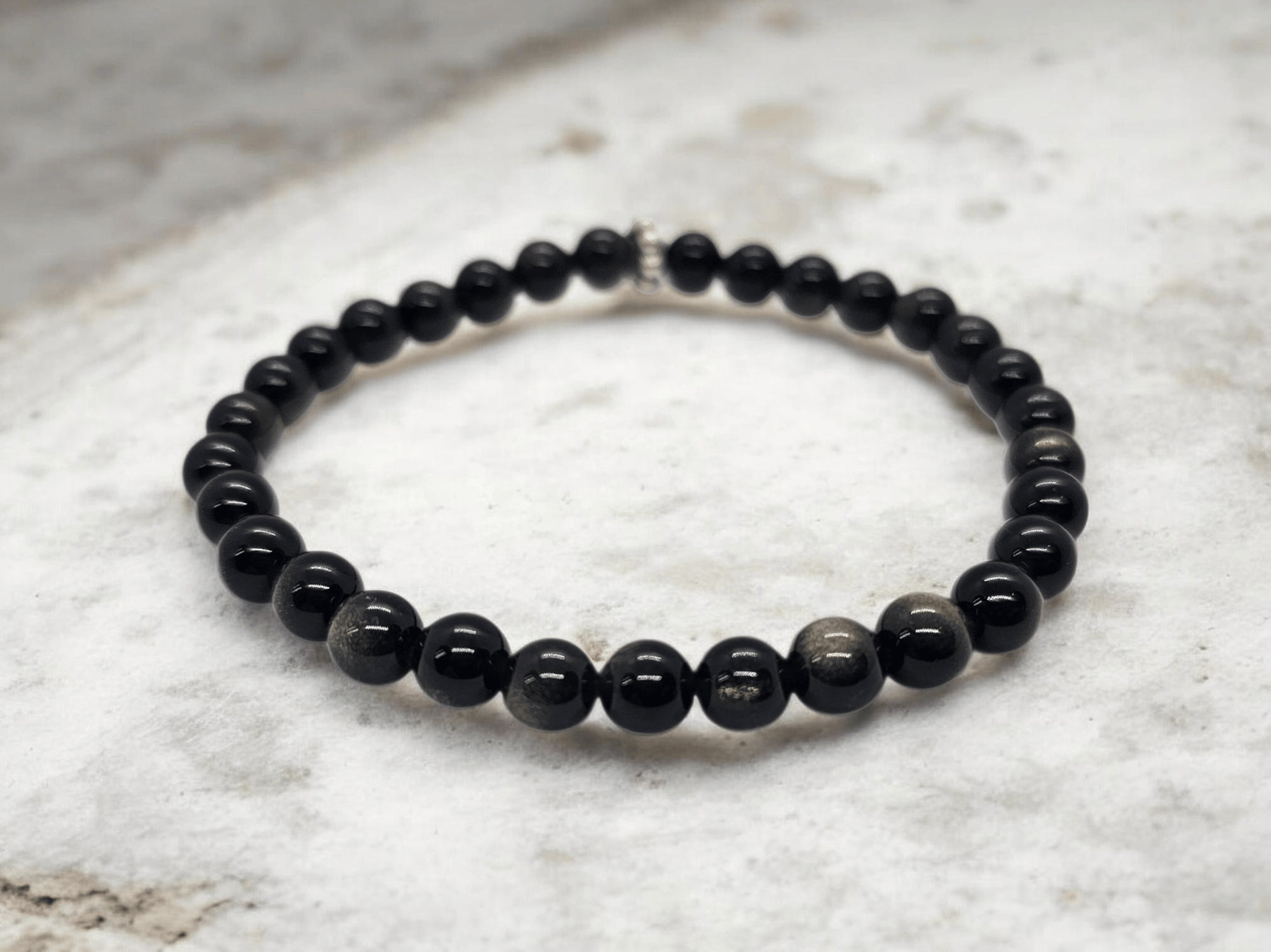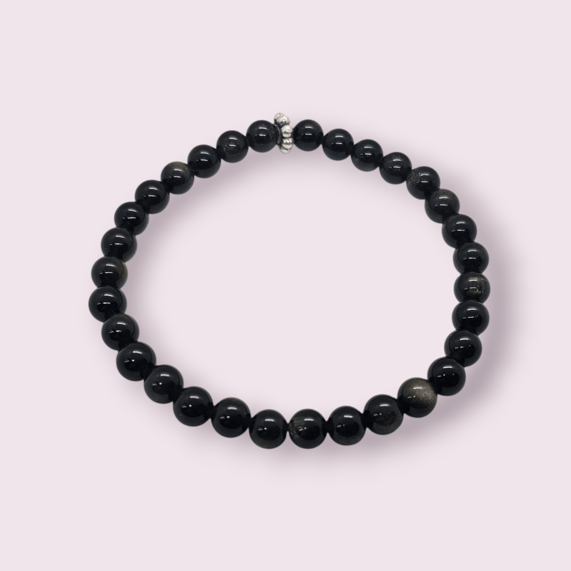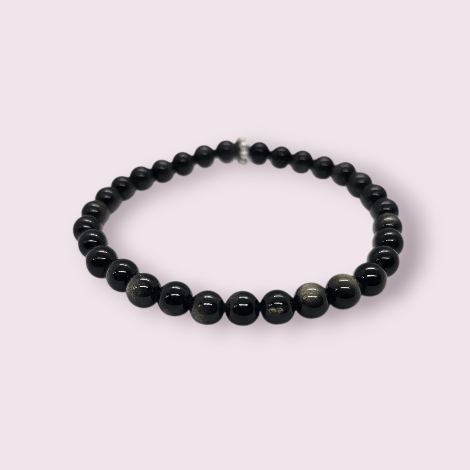 • 6mm Quality, Authentic, Grade 7A Golden Sheen Obsidian Crystal Beads with Metal Spacer (Cleansed w/ sage & sound charged with 963 & 639 hz frequency for 10 hours)